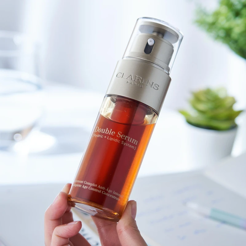 「超級精華」黃金雙激萃從第一代開始就堅持採用水、油分開包裝,克蘭詩獨創高成本雙管設計瓶器,不像一般品牌讓油水混合於一個瓶子中,潛藏了克蘭詩滿滿的用心。
