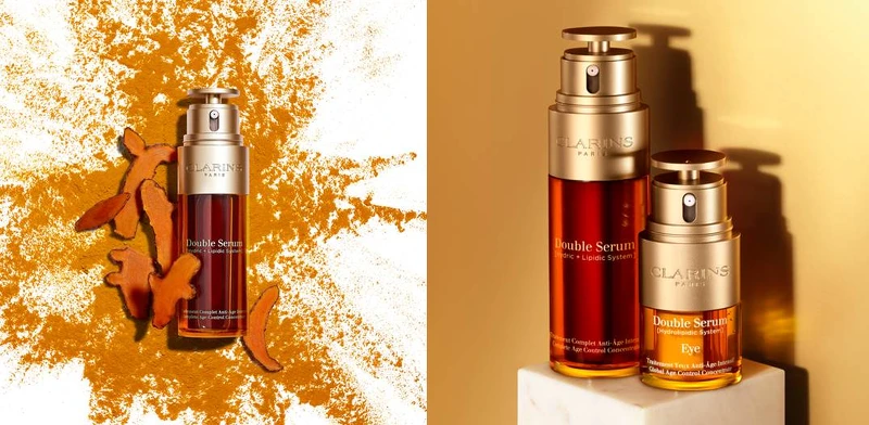 從第一代克蘭詩黃金雙激萃1985年上市以來,這款全球第一瓶以水+油雙重質地設計的抗老精華,已締造每5秒售出一瓶的驚人佳績。目前第8代配方,能為肌膚締造年輕黃金光的No.1超級精華--黃金雙激萃,克蘭詩讓68%高濃度黃金薑黃萃取深入激活肌底,每次擦進肌底的修護抗老效果超乎想像!2021年,克蘭詩結合超級植物黃金薑黃+珍貴的野生有機高山峨蔘,研發出能消弭眼周細紋、眼周暗沉,保濕且黑眼圈改善有感的全新黃金亮眼萃,讓黃金薑黃功效徹底落實於眼周保養。