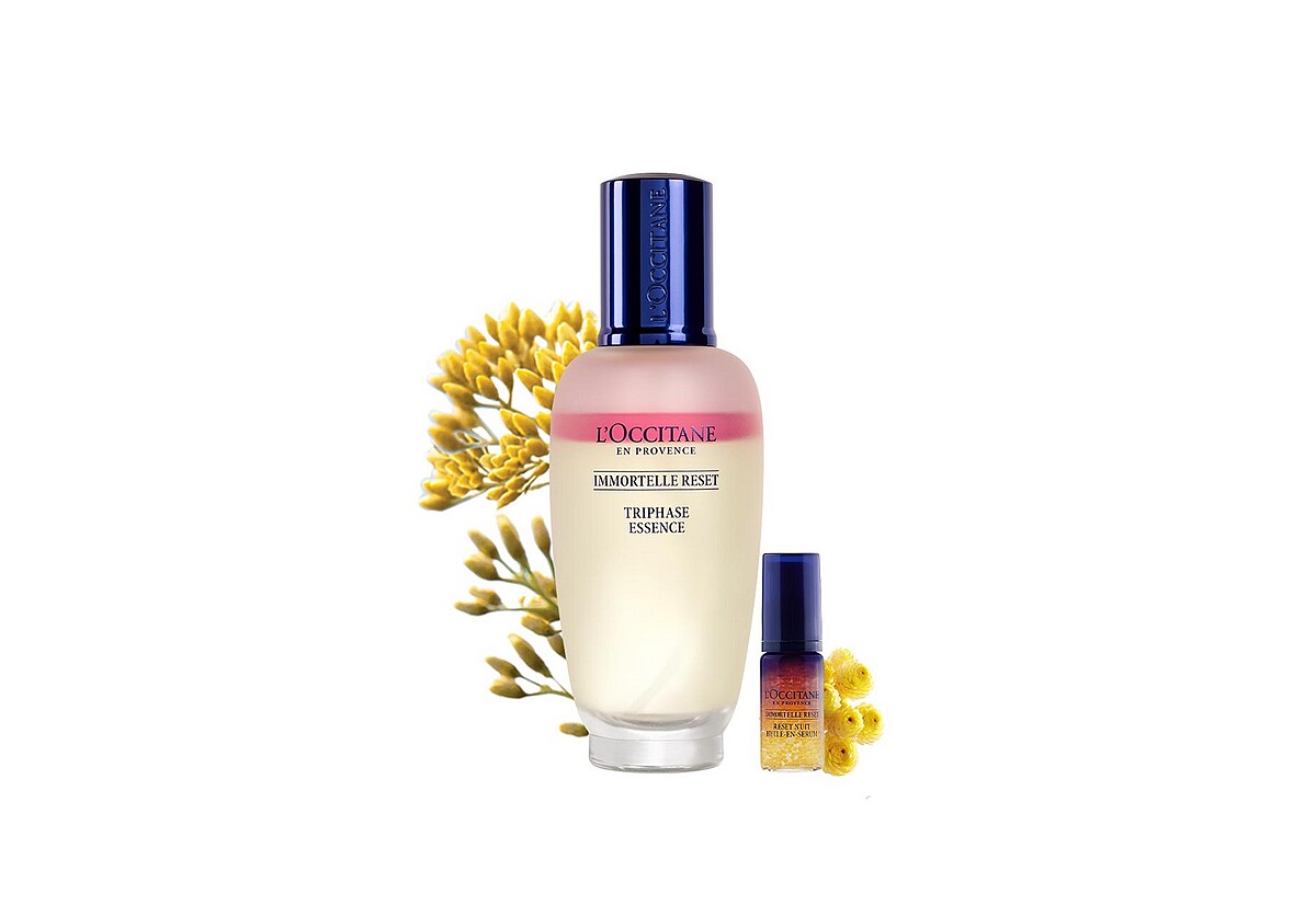 才剛推出了這瓶「星光水」光萃肌活精華水,可是歐舒丹今年閃亮亮的新品!光看這粉紅水泡泡,整個心情都被療癒了~~首創的三層質地,搭配22%精華油、78%精華水的完美比例,是參考肌膚原生的油水平衡,而且成分99%都是天然成分,精華油中除了蘊含歐舒丹明星成分「蠟菊精華油」,能使肌膚Q彈緊緻外,特別添加「天然益生元」,幫助膚表菌叢平衡,穩定膚況、增強防禦力!使用前搖一搖就能將三層質地均勻混和,用起來既有精華油的潤澤、又能擁有精華水的輕盈清爽,一年四季、各種膚質都很適合~M編每天保養順序就是星光瓶→星光水→蠟菊霜,3瓶就能輕鬆搞定問題膚況,每天起床都覺得肌膚一天比一天滑溜!