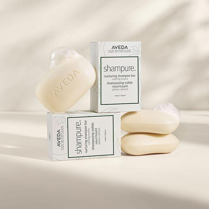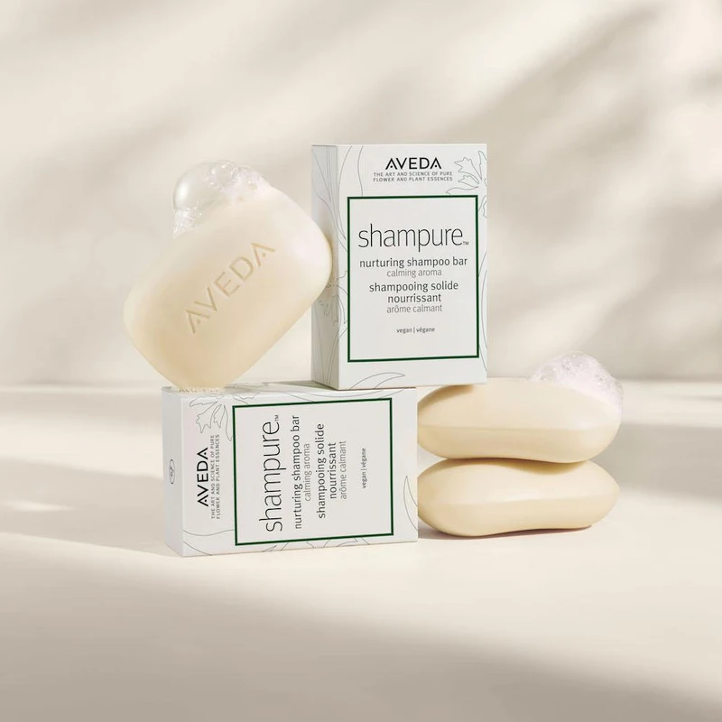 2021年AVEDA限量推出第一款洗髮皂「地球月限定經典純香皂」,運用了海甘藍油讓髮絲維持長時間輕盈柔順,溫和成分來自94%天然成分萃取,無添加介面活性劑及矽靈,並且散發花植經典香氣。輕巧的肥皂降低了塑膠的使用,且包裝紙盒來自100%回收再製FSC認證回收材質。用心的設計,可省下2頓塑膠原料,相當於18萬支寶特瓶的重量,讓美麗不留痕跡。