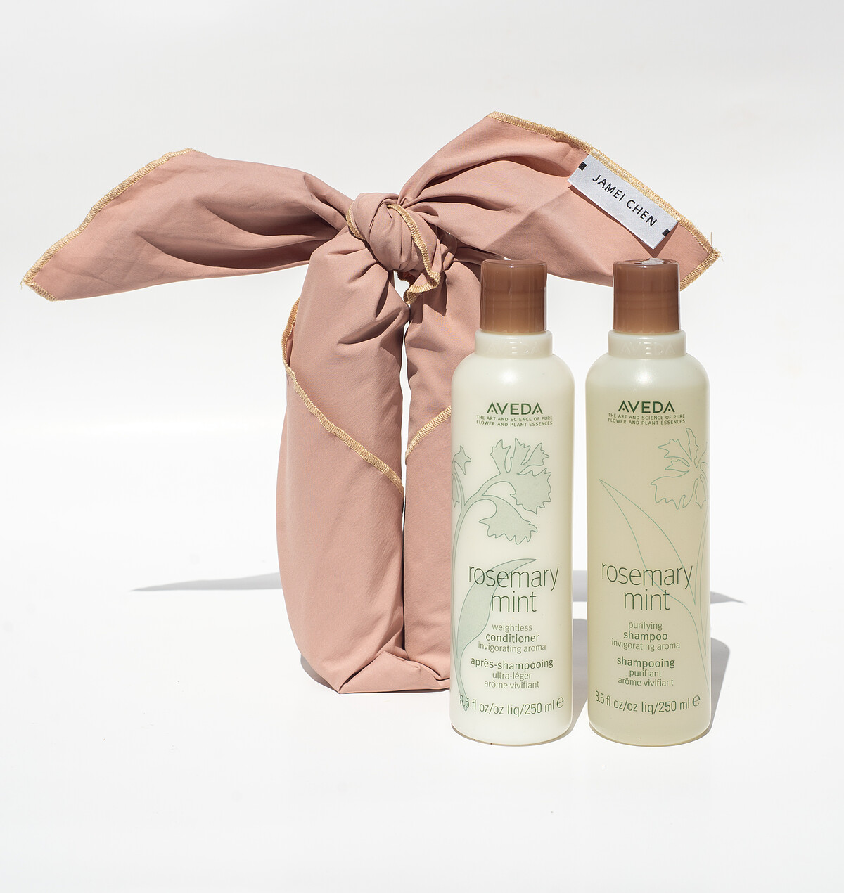 為了不讓禮物包裝成為一種浪費,AVEDA與臺灣時裝設計品牌JAMEI CHEN合作,將生產線剩餘的精美布料改造成可多元使用的生活萬用巾。不僅可變化成多種包裝形式取代紙盒包裝,更可作為披巾、餐墊、桌巾等用途,在日常生活中被重複使用,用永續時尚妝點日常生活。