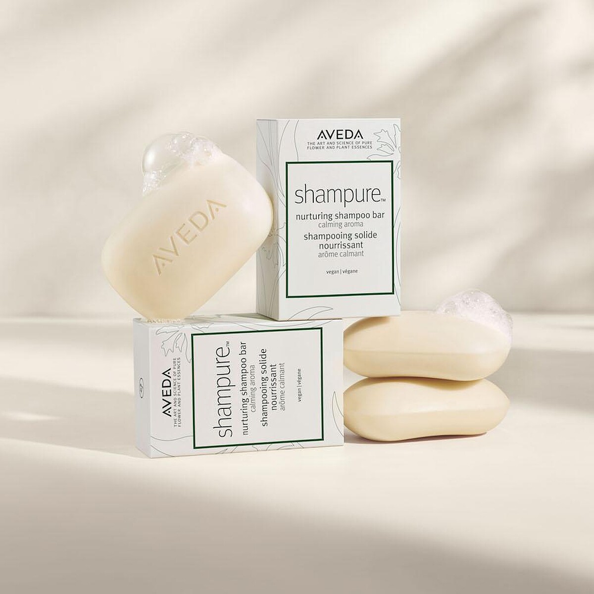 2021年AVEDA限量推出第一款洗髮皂「地球月限定經典純香皂」,運用了海甘藍油讓髮絲維持長時間輕盈柔順,溫和成分來自94%天然成分萃取,無添加介面活性劑及矽靈,並且散發花植經典香氣。輕巧的肥皂降低了塑膠的使用,且包裝紙盒來自100%回收再製FSC認證回收材質。用心的設計,可省下2頓塑膠原料,相當於18萬支寶特瓶的重量,讓美麗不留痕跡。