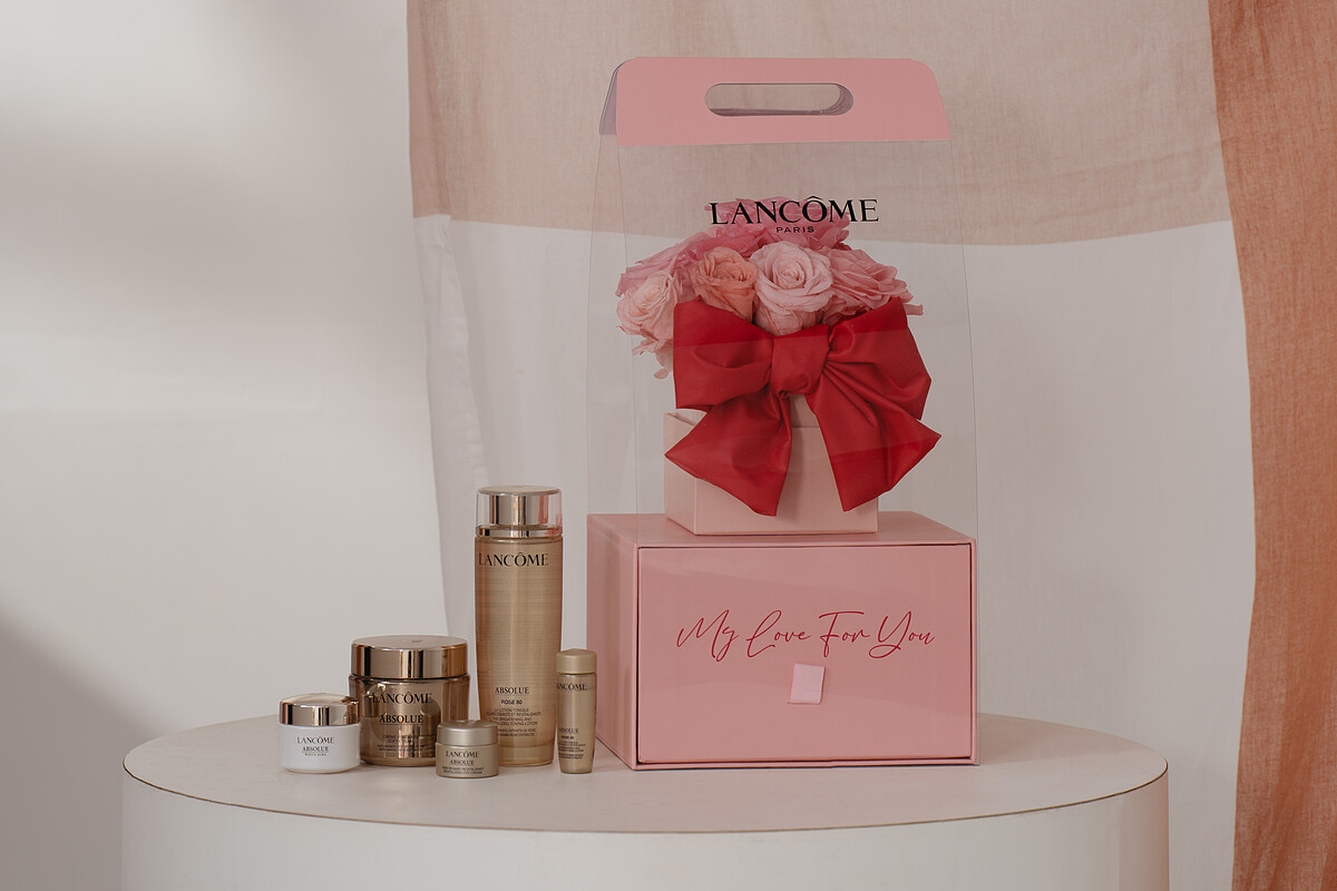 如果要送得狂送得寵,絕對不能錯過消費滿15,000免費加贈的「澎湃玫瑰花禮」,有象徵永不凋零的永生玫瑰花+可當精緻首飾盒的手工禮盒,搭配客製心意小卡,僅於全台13個櫃點推出,可說是限量中的限量!推薦購入蘭蔻頂級絕對完美系列產品,用過蘭蔻玫瑰霜的姊妹都說,能把膚況定格在最佳狀態,就跟永生玫瑰一樣,擁有不凋零的美貌,收到後絕對幸福感爆炸!