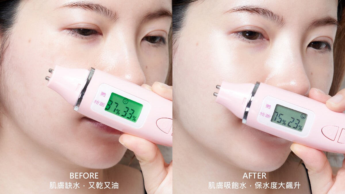 使用水分儀測試,保水力真的有夠驚人,數值從37%→75%,直接飆升2倍,根本比敷面膜還厲害,而且肌膚Q彈澎潤,看起來超年輕好減齡!!!