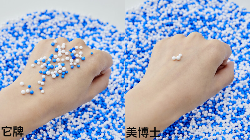 比起其他防曬,美博士擦起來真的很水感清爽!一下子就被肌膚吸收了~就算戴著口罩,也不悶不黏,M編實際用保麗龍球測試沾黏度,果然0沾黏!就連重複補擦也不厚重。