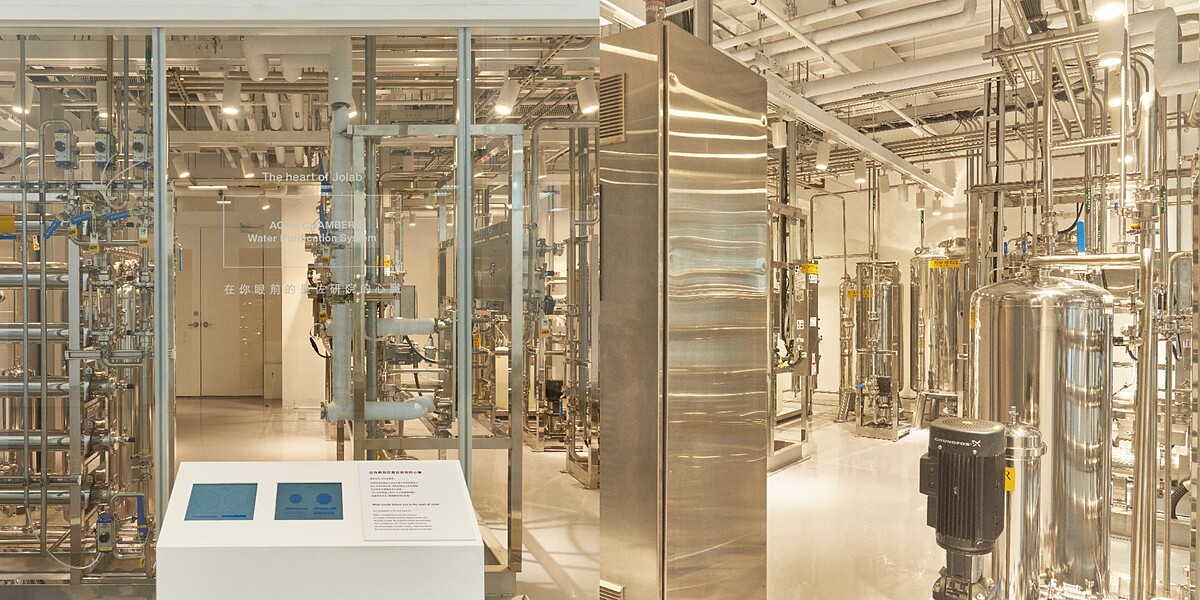 其中最重要「淨水設備」,被稱之為Jolab的心臟。藥廠等級的淨水設備,24小時不間斷嚴格控管及運轉生產最純淨優質的好水,不僅大大提升面膜精華液的穩定性,也盡可能排除因微生物與致病菌帶來的肌膚不適感。