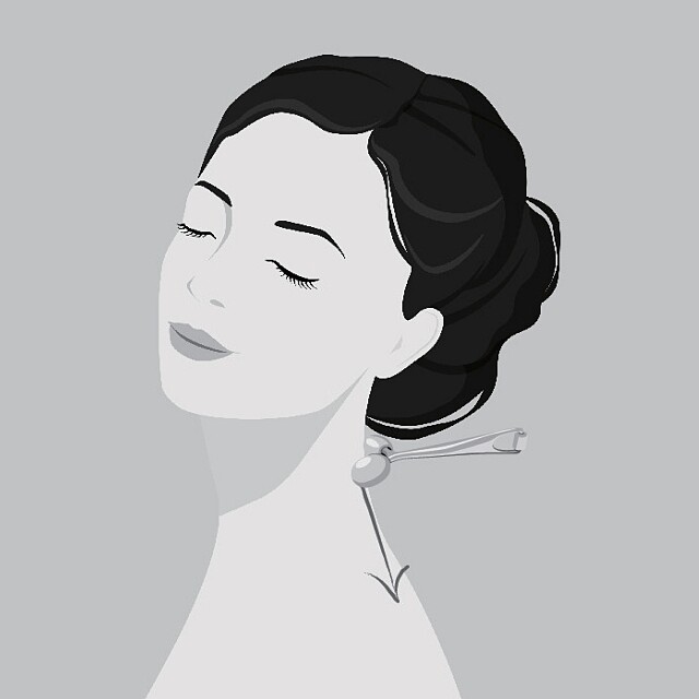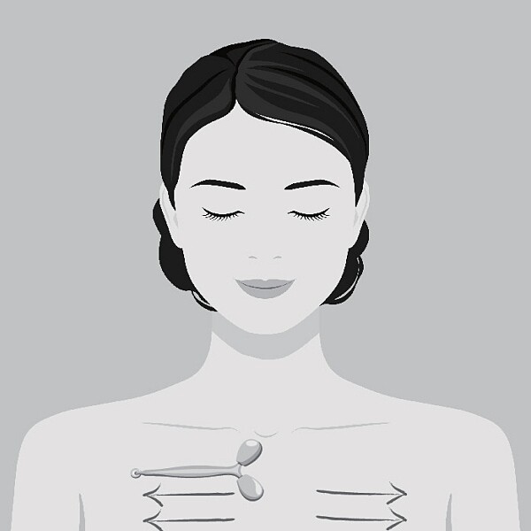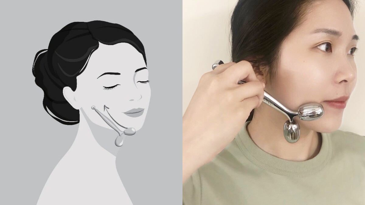 將滾輪放置在下顎線的位置,從下巴開始朝耳朵方向滾動,並重複5次。