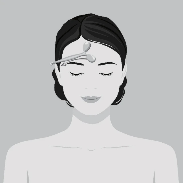 將滾輪放置在額頭中間的位置,滑向太陽穴,並重複5次。