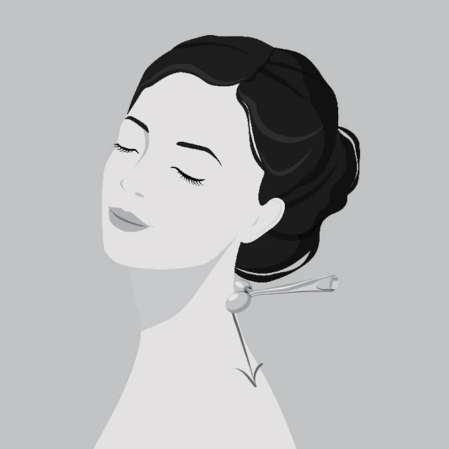 將滾輪放置在下顴骨的位置,從鼻側開始朝耳朵中間的方向滾動,並重複5次。