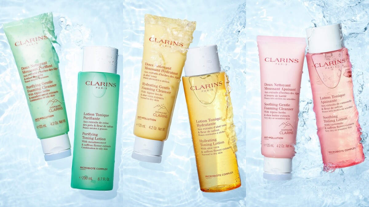 全系列一口氣推出10款品項,主打蘊含來自阿爾卑斯山零污染淨土「克蘭詩純淨之巔(Domaine Clarins)」的純淨溫和配方,包含有機黃金龍膽草與有機檸檬香蜂草等,還運用天然肥皂草取代人工皂鹼,再搭配依據不同膚質調製、內含海洋益生菌的純淨化妝水,為肌膚「先洗淨、再平衡」,均勻且全面性地升級好膚質。