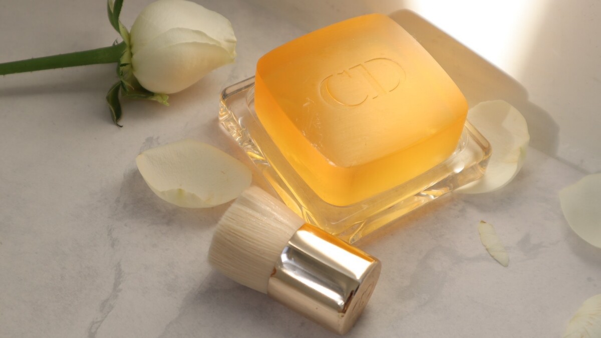 製皂工序中注入豐沛甘油、玫瑰精華油成份,一塊玫瑰潔膚皂就含有高達25%的護膚成份,讓潔膚如同頂級SPA般舒適怡人。晶亮清透的微膠皂體,只要輕輕搓揉、或搭配迪奧精萃再生花蜜潔顏刷於皂面畫圈起泡,就能打造綿密細緻泡沫,溫和潔淨肌膚髒污與殘妝,洗後肌膚純淨潤澤。