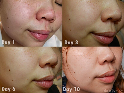 身為混和性膚質的Weiwei,是第一次使用酸類產品,由於理膚寶水#三酸煥膚瓶含舒敏成份:菸鹼醯胺和理膚寶水溫泉水,所以用起來特別安心,她會在粉刺明顯處塗擦#三酸煥膚瓶後加強畫圈按摩,使用一週,突起的粉刺林都變平滑了!有圖有真相!真的太神奇~