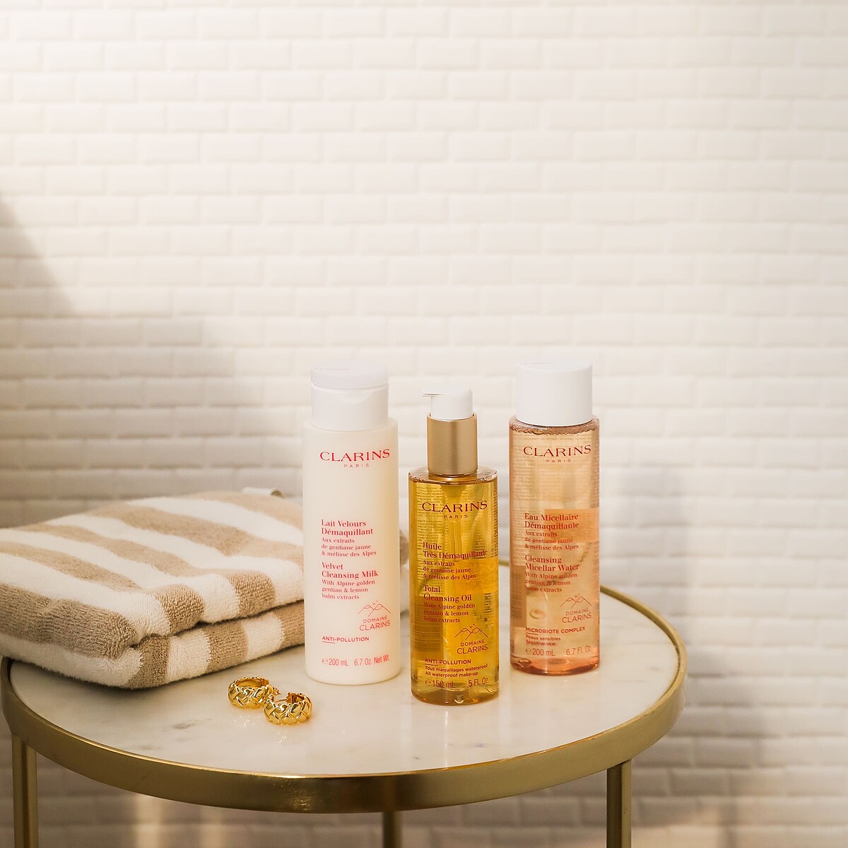 因為上妝濃淡度差異、卸妝習慣的不同,每個人熱愛的卸妝劑型也不一樣,克蘭詩阿爾卑斯純淨系列一次把卸妝水、卸妝乳、卸妝油同步升級,同樣以有機黃金龍膽草與有機檸檬香蜂草打造的「純淨溫和配方」為核心成分,搭配具有淨化、吸附髒污粒子的辣木萃取,卸妝開始呵護肌膚微生態,同時還給你乾淨通暢的肌膚觸感。