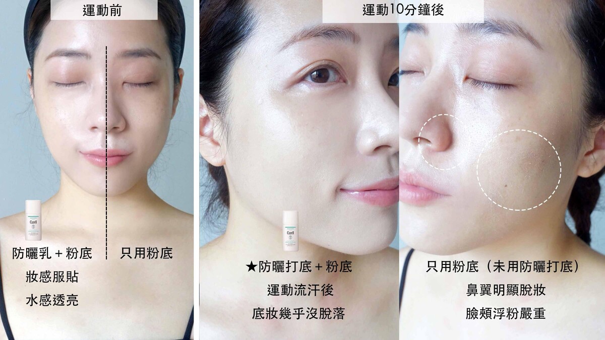 Curel臉部用的潤浸保濕隔離防曬系列,都能當成妝前隔離乳打底,不但後續更好上妝,完全沒有浮粉、打架問題,妝容更持久服貼,一整天怎麼流汗都不怕,從此跟狼狽脫妝說掰掰!