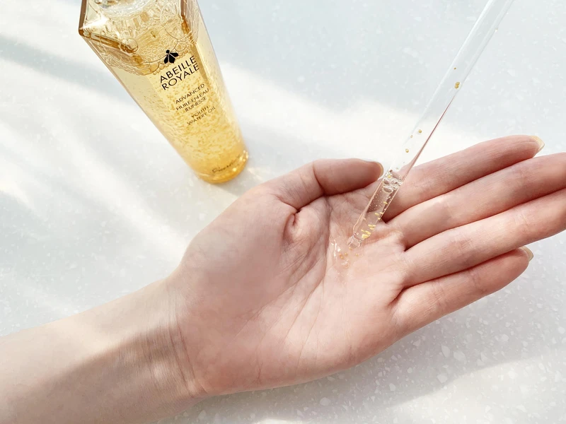 新一代 Guerlain 皇家蜂王乳平衡油3G,使用起來比水保濕,同時比油輕盈,其萃取自純淨蜂蜜與蜂王乳,採用動態黑蜂修護科技製成,一抹吸收同時時倍速修護。當肌膚出現乾燥或油水不平衡的問題,只要在保養或上妝流程中加入一滴蜂王乳平衡油,就能讓肌膚重新散發澎潤光澤。