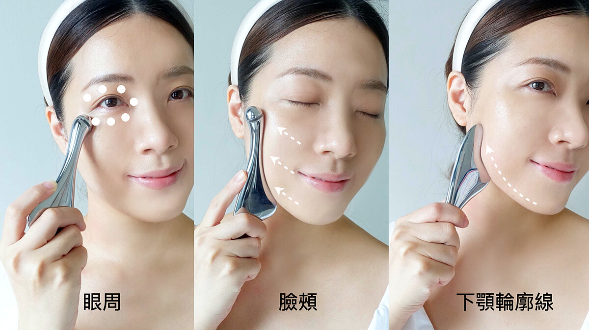 專為細緻眼周肌膚設計的360°圓點,用點壓+拉提方式,加強眼周血液循環,立即舒緩疲累感,熬夜的熊貓泡泡眼也速速消除。除此之外,加碼按摩法令紋及唇周,擊退各種老化紋路!