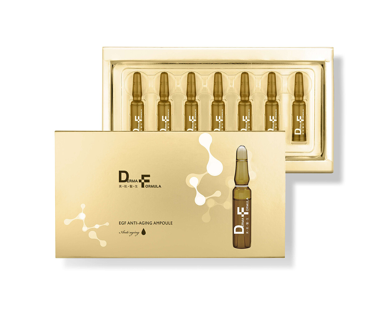 濃縮最新鮮的高活性成分,小瓶裝的安瓶近年已被視為速效保養的第一首選!DF美肌醫生「EGF逆時撫紋高效安瓶」,蘊含台塑生醫實驗室獨創的5X EGF喚醒肌活因子,由53種胺基酸組成,能喚醒失去活力的肌膚重現新生,搭配頂級抗老成分五胜肽、六胜肽、三胜肽、海藻玻尿酸與多種植萃成分,利用微脂囊包覆科技,將高濃度EGF成分直送肌膚深層,短時間就能達到淡紋、緊實、長效保濕的顯著效果,M編除了全臉塗抹,還會針對魚尾紋、抬頭紋、法令紋等處加強按摩,7天密集使用,膚質大大提升!連同事都以為M編去打了電波!