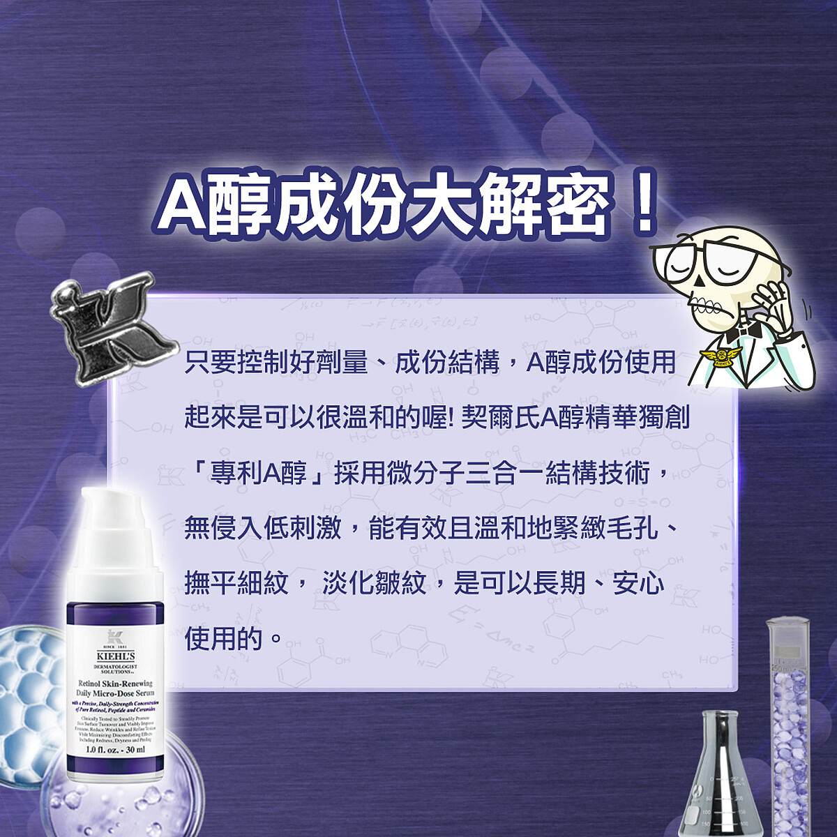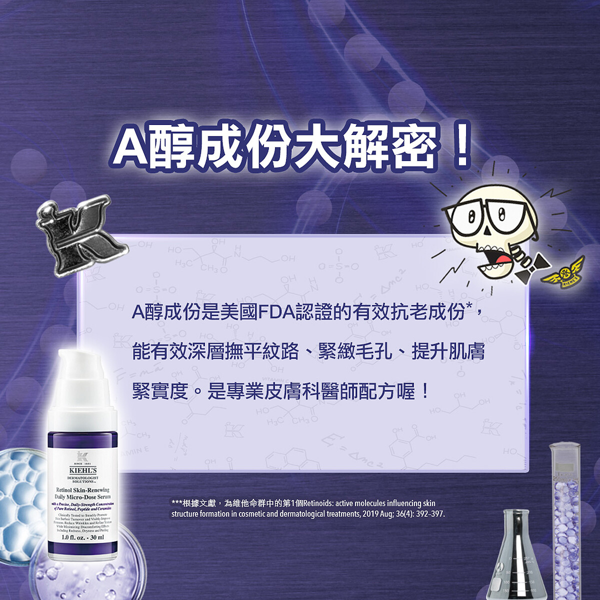 玻尿酸、胜肽抗老早已不夠看!還不快跟上全世界都在瘋的「A醇」保養抗老潮,「A醇」不僅為美國FDA公認最有效抗老成份,甚至是醫美界愛不釋手的抗老聖品,身為最潮保養品牌Kiehl’s,當然不會錯過這場全球盛事!