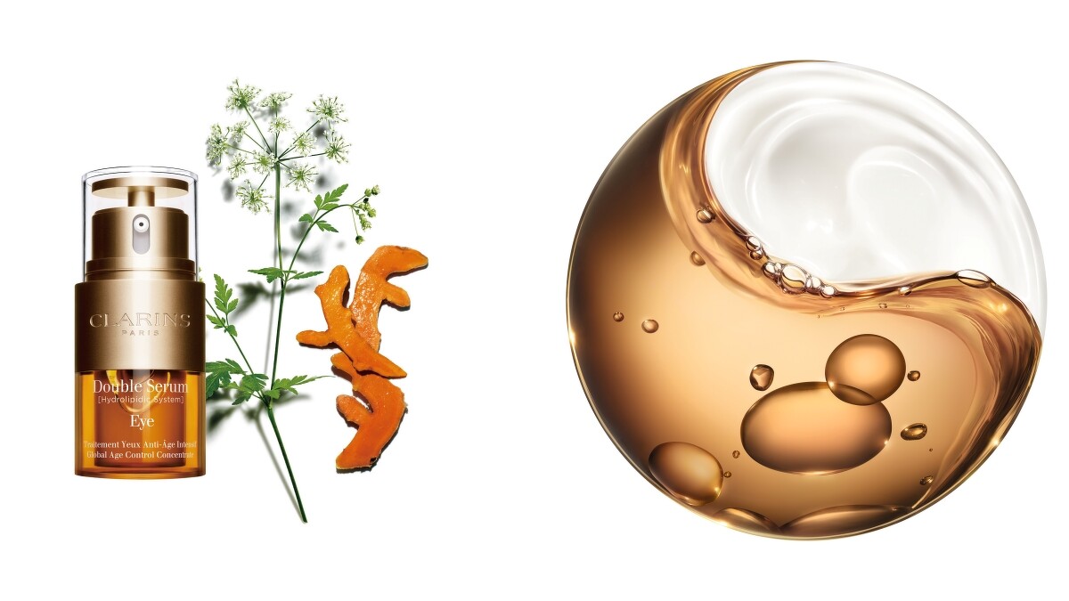 針對較為脆弱的眼周肌膚,克蘭詩調配了水:乳=2:1的雙質地配方,由1/3的彈潤乳精華加上2/3的提亮水精華所構成,更適合眼周肌膚,並且同樣採用雙管、可調節用量的包裝,小滴可做日常水亮保養,單獨使用、作為眼周第一步的眼部精華皆行,大滴則可當作眼膜使用,薄敷急救亮眼,不需再以清水洗淨,十分便利。