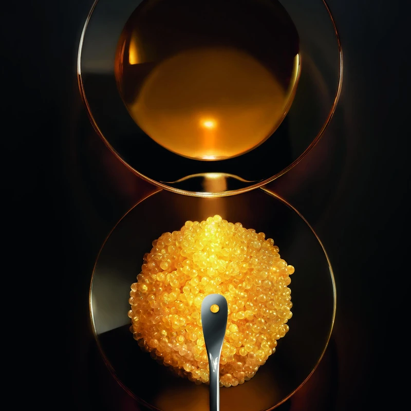 2021年,La Prairie萊珀妮科學家再度從魚子中發現極為珍稀天然的「魚子精醇複方」(Caviar Retinol),這種蘊含魚子脂質與高濃度魚子視黃醇的成分,非常難以萃取及保存,宛如魚子內深藏的修護精鑰,能為肌膚帶來強大的撫紋、緊緻,及封存水分與青春能量的全方位修護保養效果。因此,La Prairie萊珀妮透過尖端萃取工藝,取得這難能可貴的魚子複方後,更因應這項珍貴成分適合隱於暗夜的天然特性,創造出La Prairie萊珀妮首款蘊藏經典魚子保養成分的精華油-全新魚子美顏夜間緊緻精華油,讓肌膚夜間黃金修護保養邁向前所未有的完美巔峰。