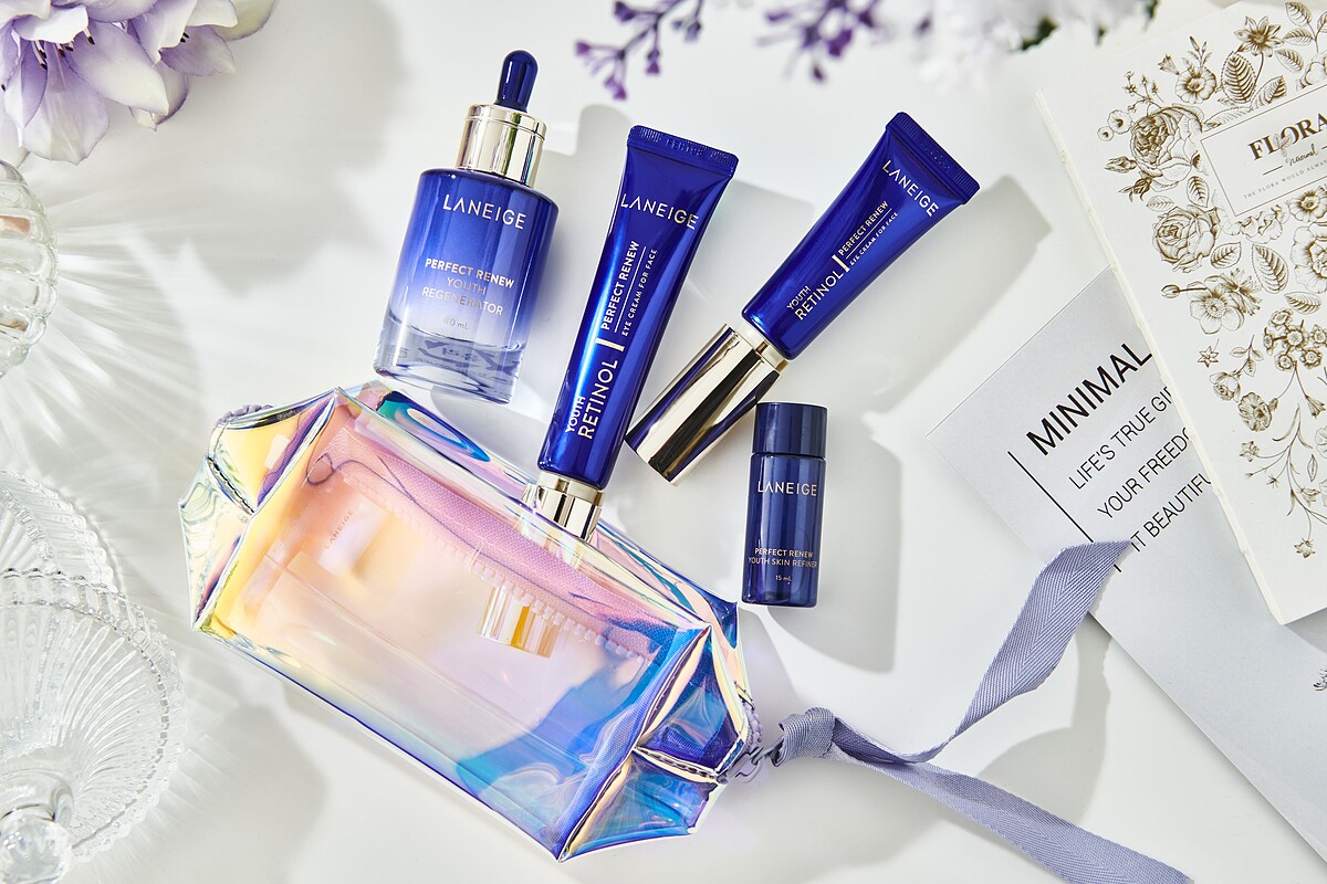 內含:完美新生肌能露AD 40ml+完美新生超級A醇撫紋精萃30ml+完美新生超級A醇撫紋精萃15ml+完美新生醒肌露AD 15ml+LNG 星魅紫炫彩化妝包。價值:NT$7,425 (61折)
