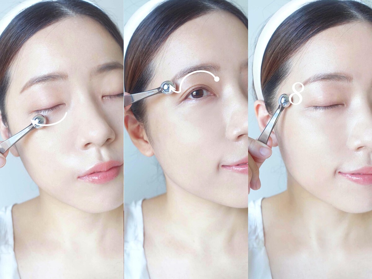 居家保養手法很簡單易上手! 首先是眼周3步驟,使用深海銀光棒1.上提眼角: 從下眼頭→眼尾滑動,上提眼角、下淡眼圈。2.內澎緊緻: 從眉心→眼尾上方滑動按摩,打擊水腫、緊實眼皮。3.強韌雙眸: 太陽穴位置採用「8」的手勢,加強緊實、放鬆眼周。