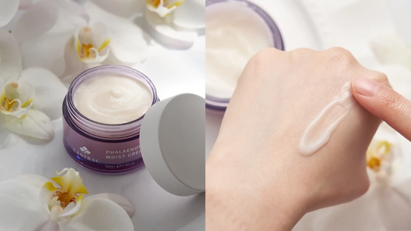 「白花蝴蝶蘭-沁水保濕系列」萃取台灣蘭花珍貴活性成分,擁有90%天然美膚成分,透過獨家L.T.E.活性萃取技術,低溫萃取蘭花最珍貴的保養成分:多醇體、花青素、類黃酮等等並完整封存,可以說是滴滴珍稀,一抹給肌膚最頂級的呵護,輕鬆養出健康水嫩的好膚質,跟乾燥粗糙、細紋說掰掰,摸起好Q好彈、好細緻。
