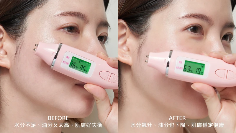 剛開始覺得保濕效果真的很好,能快速舒緩緊繃不適感,也不會黏膩讓肌膚悶悶。用水分儀測試、結果真的嚇到吃手手,不只水分從36%飆升↑63%,根本比敷面膜還保濕,最厲害的是連油分也降低↓16%,完全打破乳霜只會油膩的框架!