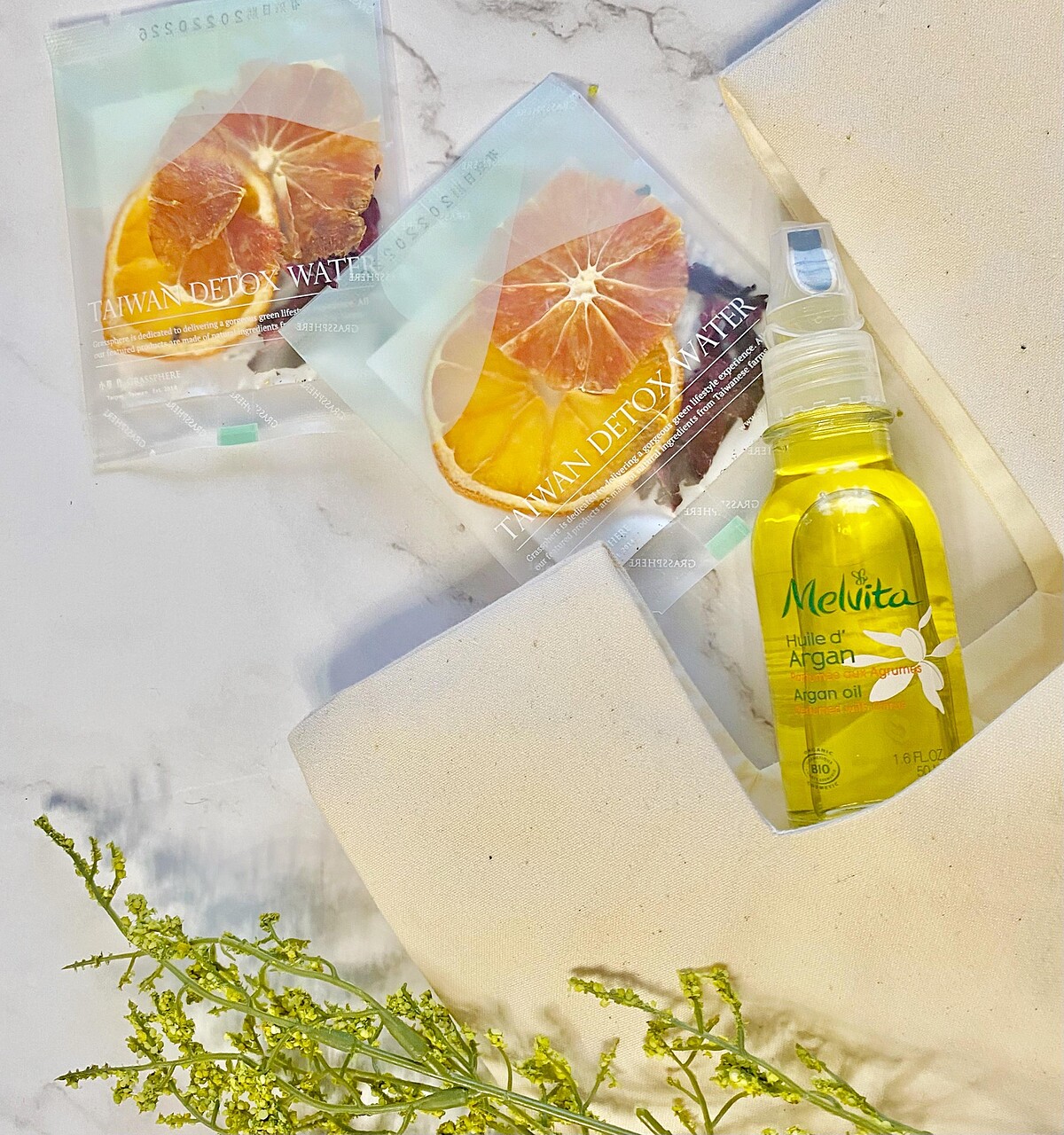 近年減法保養很流行,用簡單、純粹的護膚品減少給肌膚的負擔,Melvita始終對於有機、純天然成分有自信,所以日常用起來也讓人倍感安心。今年Melvita特別攜手台灣在地原創花草茶品牌小草作Grassphere,用天然理念共同打造全台限量600組的「2021週慶香氛限定有機入門組」,內容包括搶先全亞洲首賣超限量版的「橙香摩洛哥堅果油」、經典的「玫瑰花粹」與「玫瑰潤澤美溶液」,當然還有小草作只送不賣、獨家特調「玫瑰柑橘果乾水」,整組就是充滿柑橘X玫瑰的宜人香氣,散發著振奮活力感也很浪漫療癒。一整包用超級文青質感的單結袋,濃濃的日式文青感風格,時髦獨特不易撞包,環保又可愛的出門去!