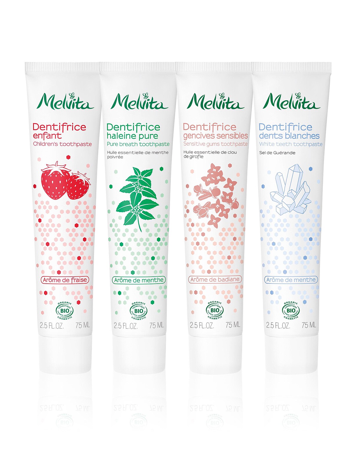 鹽之花煥白牙膏—天然珍貴海鹽配方、碳酸鈣與竹子粉末萃取使牙齒潔淨亮白;丁香保養牙膏—添加丁香和迷迭香精油,有助清潔和舒緩牙齦敏感不適;薄荷清新牙膏—清新薄荷精油和具淨化功效的綠茶萃取成分帶來好口氣;小大人專屬牙膏—不含氟化物及人工香料與色素,適合3歲以上兒童使用。