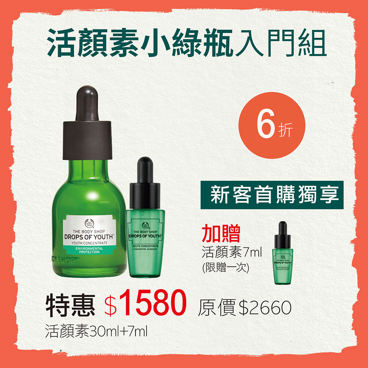 看完介紹是不是已經蠢蠢欲動想要立刻手刀購入了呢?貼心的M編也要來推坑大家週年慶必買的極緻活顏煥肌活顏素組合,特別針對想要嘗試小綠瓶的大家推出30ml+7ml的新客入門組,30ml的可以安心放在家裡用,如果想要三天兩夜輕旅行7ml的小巧不佔空間,價格也是超級優惠,新客首購獨享再加贈一瓶活顏素7ml,絕對要趁現在多囤幾組啊!