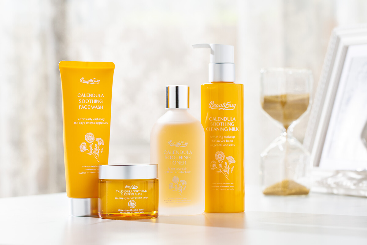 BeautyEasy除了洗臉去角質產品有著無數網友一致熱推的超好口碑,能滿足肌膚換季抗敏弱、加強舒緩修護與保濕需求的「金盞花保養系列」,剛上市不久就迅速累積正面好評,讓無數重視肌膚健康質感的粉絲「全套秒包」毫不遲疑啊!「金盞花保養系列」以兩大專櫃級植萃金盞花、洋甘菊為核心,四款涵蓋洗臉、卸妝、活膚、夜間加強的產品,再各自加入輔佐成分,讓每一步保養都呈現最佳效果。