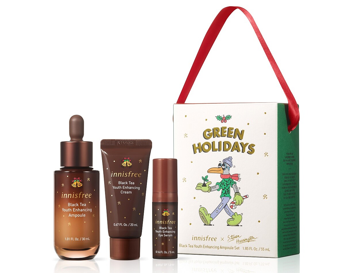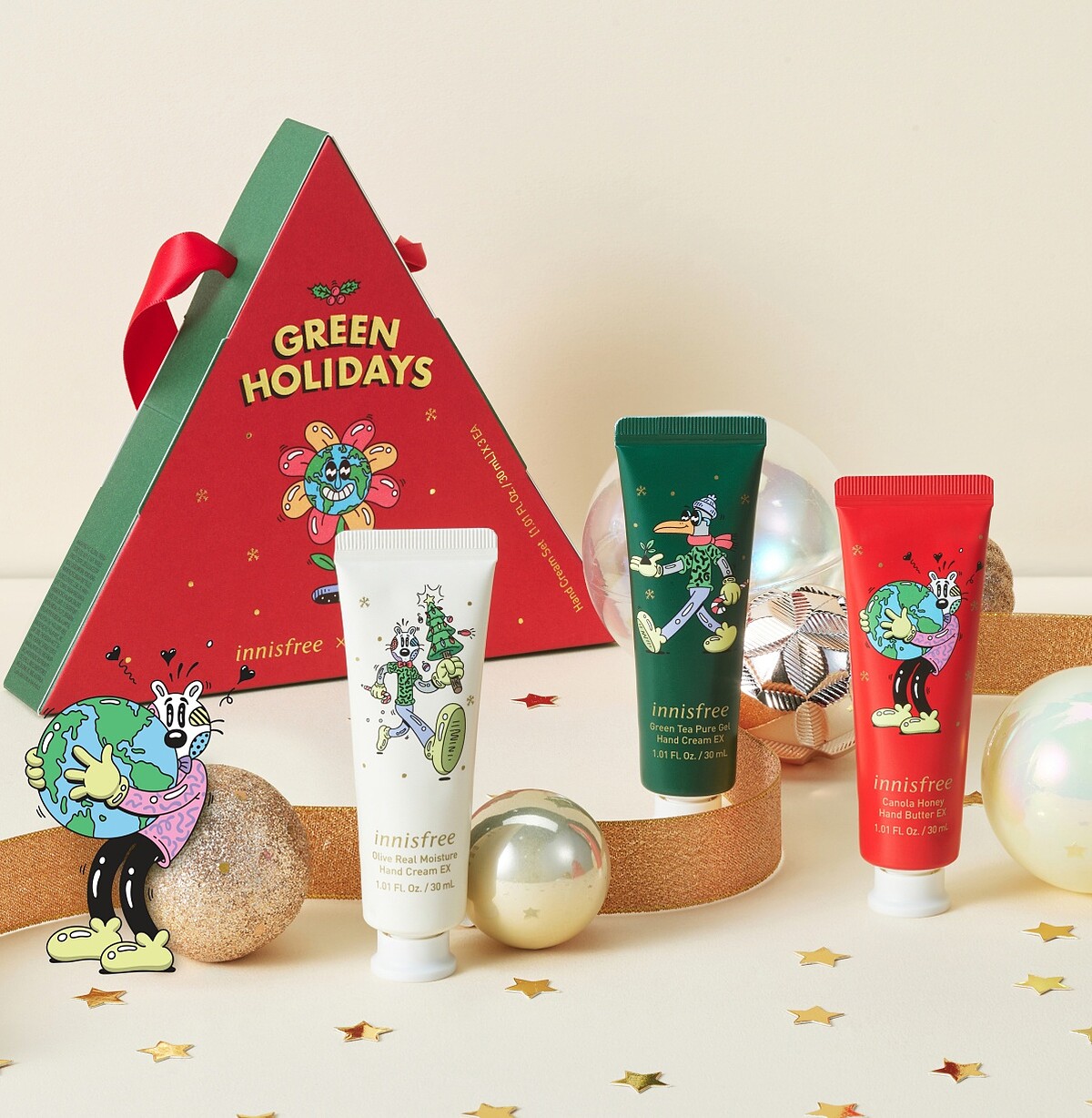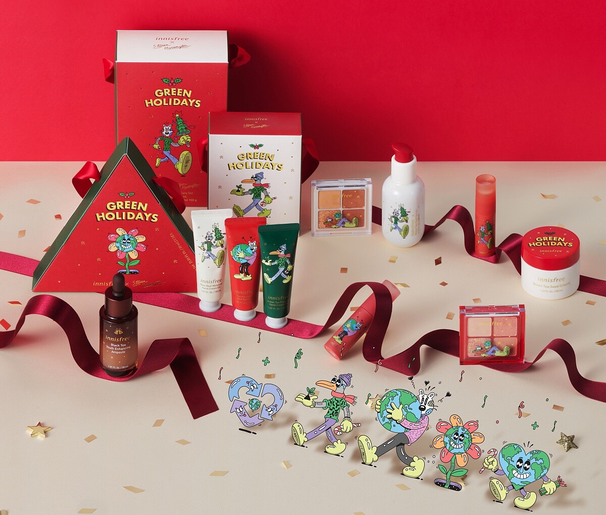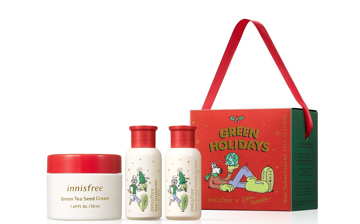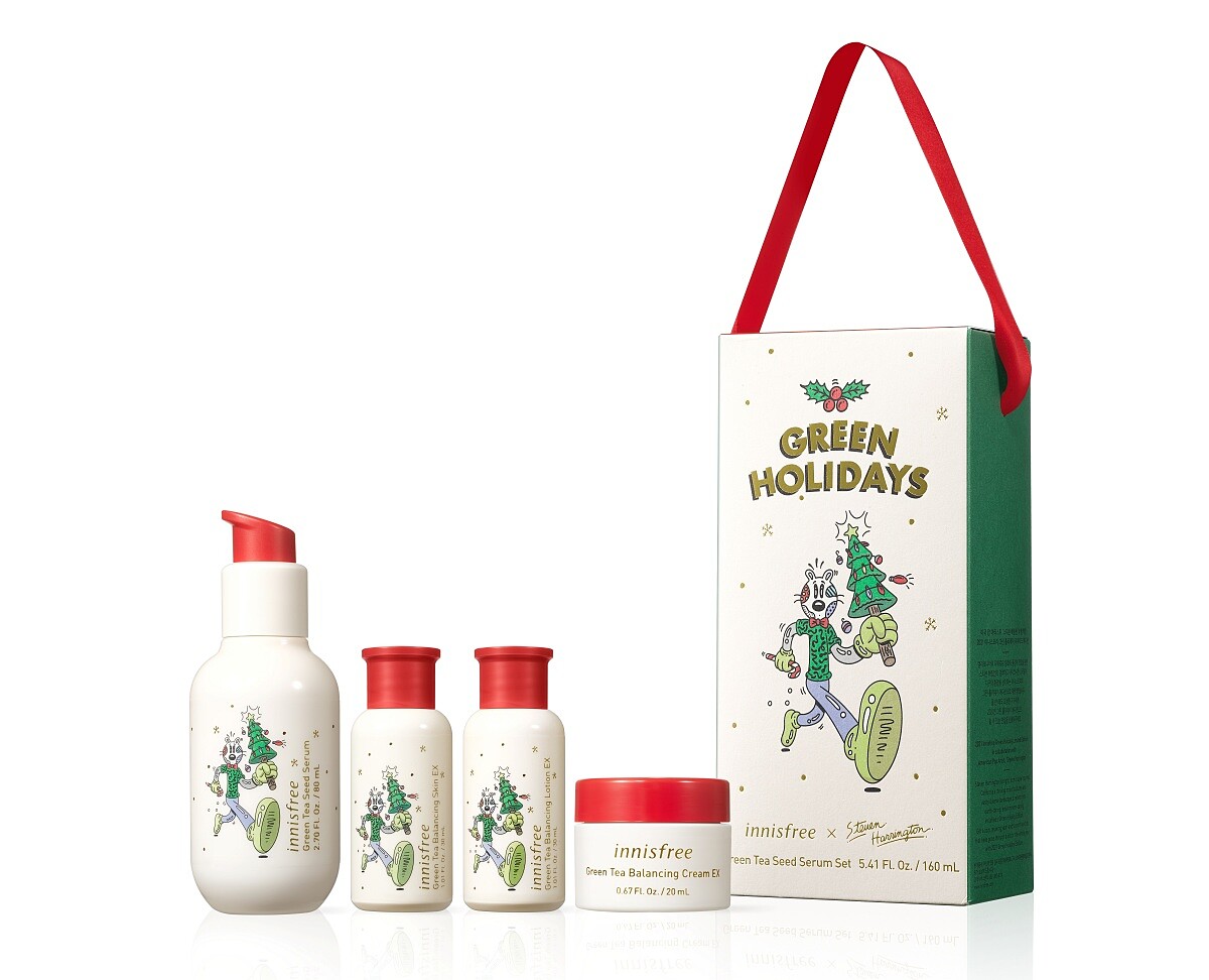 innisfree每年都會推出綠色聖誕限定系列,今年再度與美國洛杉磯藝術家Steven Harrington攜手合作,以愛護地球與自然為發想,用有趣活潑的方式結合假期氛圍呈現節慶主題,設計充滿地球圖案與Steven Harrington獨特的「行走角色」,並以禮物形式包裝,展現年末贈禮的儀式感。