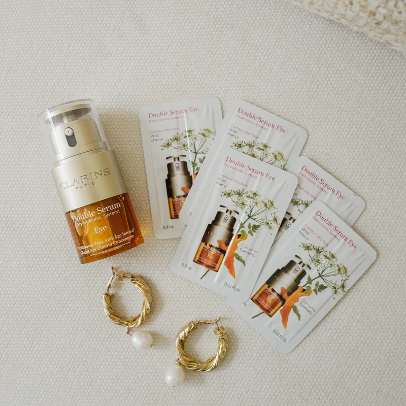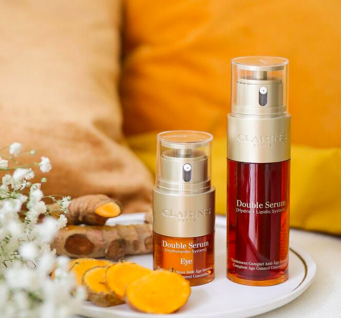 要說克蘭詩口碑還真是巨多,首推黃金雙激萃全球每五秒就賣出一瓶,每天都可以佔據IG河道,主要的薑黃成分能精準修護肌膚,從肌底開光創造年輕膨彈,而今年推出姊妹作黃金亮眼萃人氣更旺,以薑黃加有機峨參高達96%的天然成分幫助眼周補水、黑眼圈退散,內行的都知道這黃金CP缺一不可!