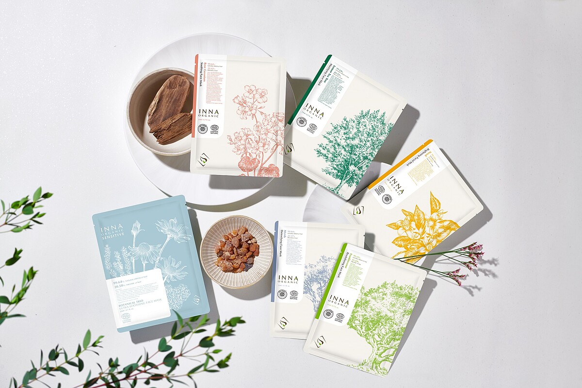 品牌最知名的隱形面膜亦獲得國際天然認證,採更透明服貼的頂級冰羽靈布,在製造過程中減少一層PE膜,雖然增加製造裁切過程的難度,但為減少塑膠消耗,仍堅持為環境保護盡一份心力。值得一得的是,已外銷多國的童顏有機今年首度使用台灣植萃創作舒敏系列,把更多台灣的農作物透過產品推廣給全世界,是新銳品牌的台灣之光。