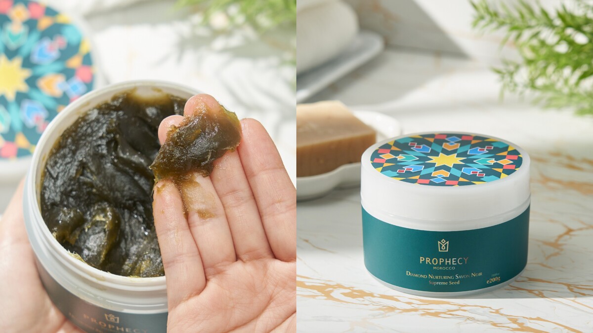 其中最吸睛的非「晶鑽美膚黑皂系列」莫屬,黑色膏狀沐浴產品源自北非撒哈拉千年智慧,富含超過百分之七十的頂級初榨橄欖油,再搭配”摩洛哥皇室工法”的製程,過程繁複細膩、才能成就出皇家級的護膚保養。