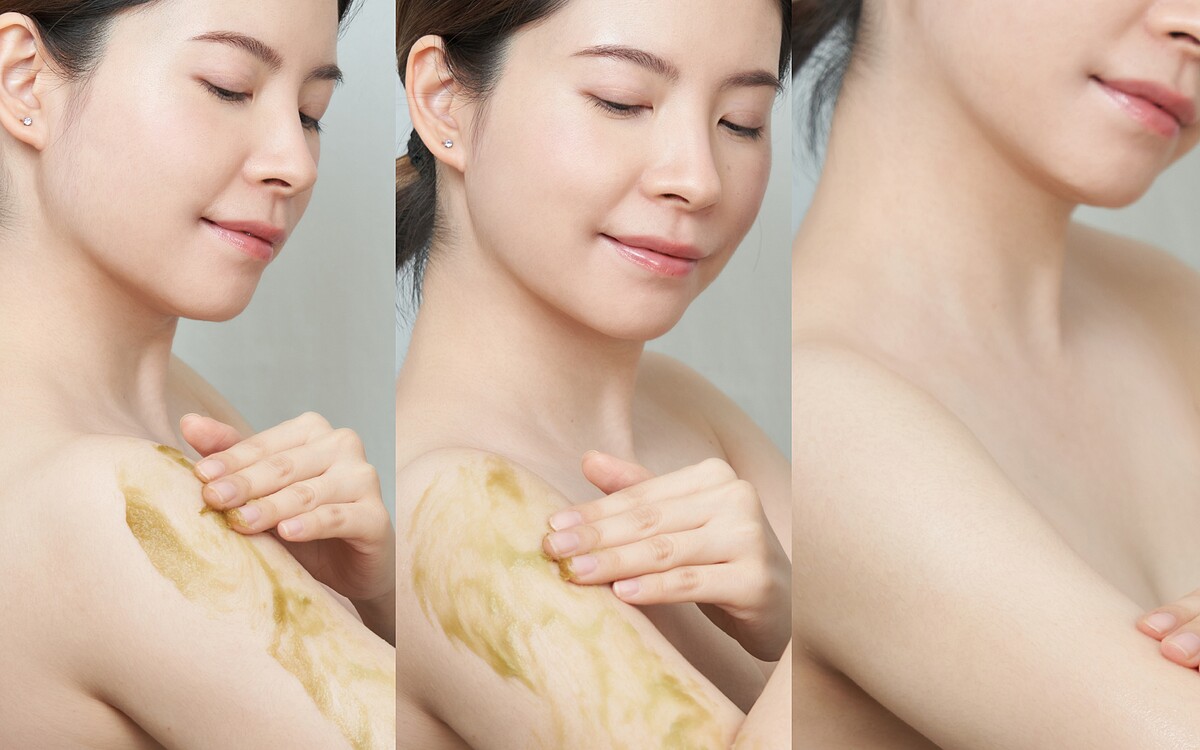 一週一次深層清潔:以熱水沖洗身體,使毛細孔打開,接著取出約1指節用量於手心,搓揉至略白膏狀後塗抹於身體肌膚、並停留2-3分鐘。最後以清水沖淨,達到深層去除老廢角質效果,且不需使用其他沐浴品。洗完感覺毛孔暢通會呼吸、肌膚潔淨滑嫩不乾澀,清潔後建議可搭配身體油,鎖住滋養成分不流失。