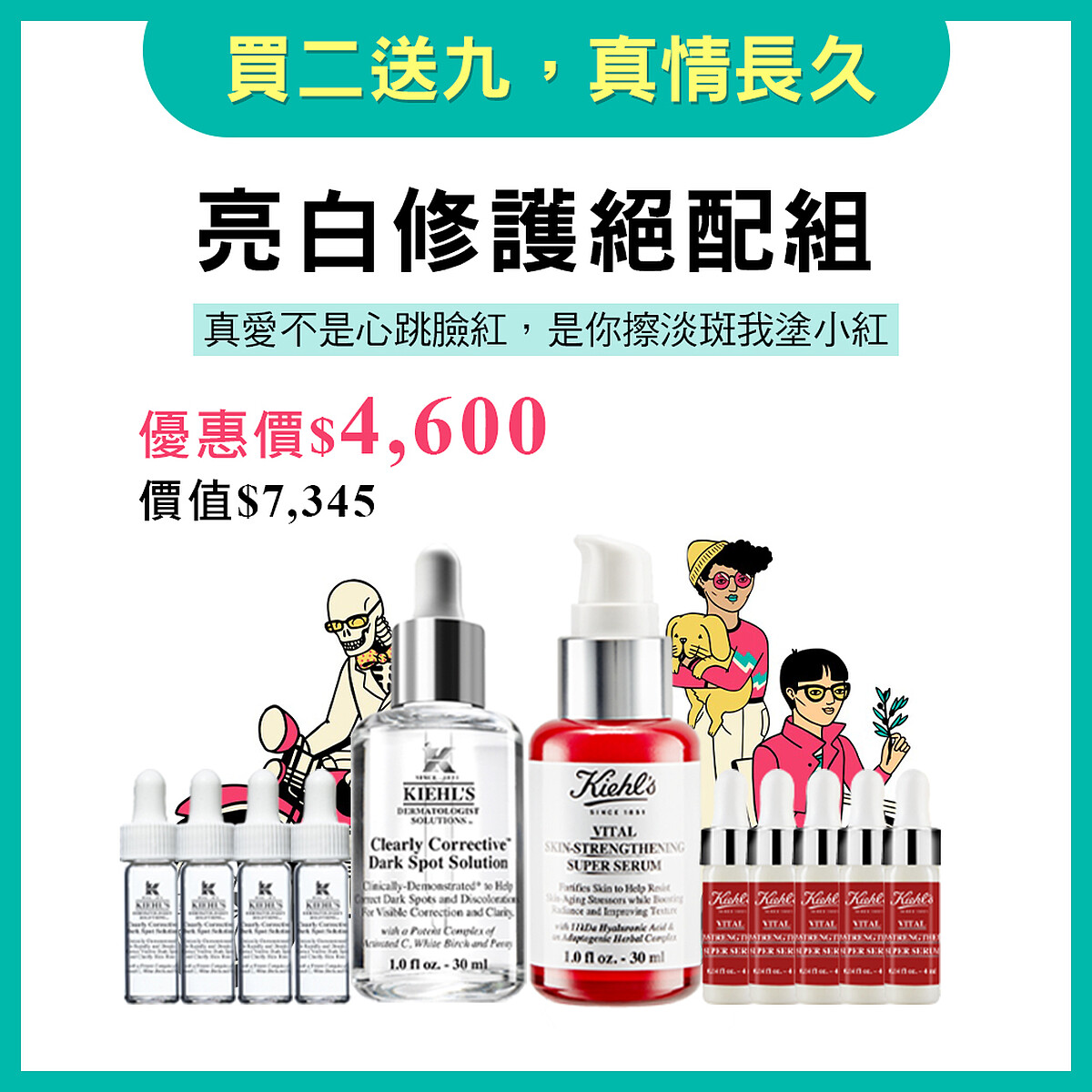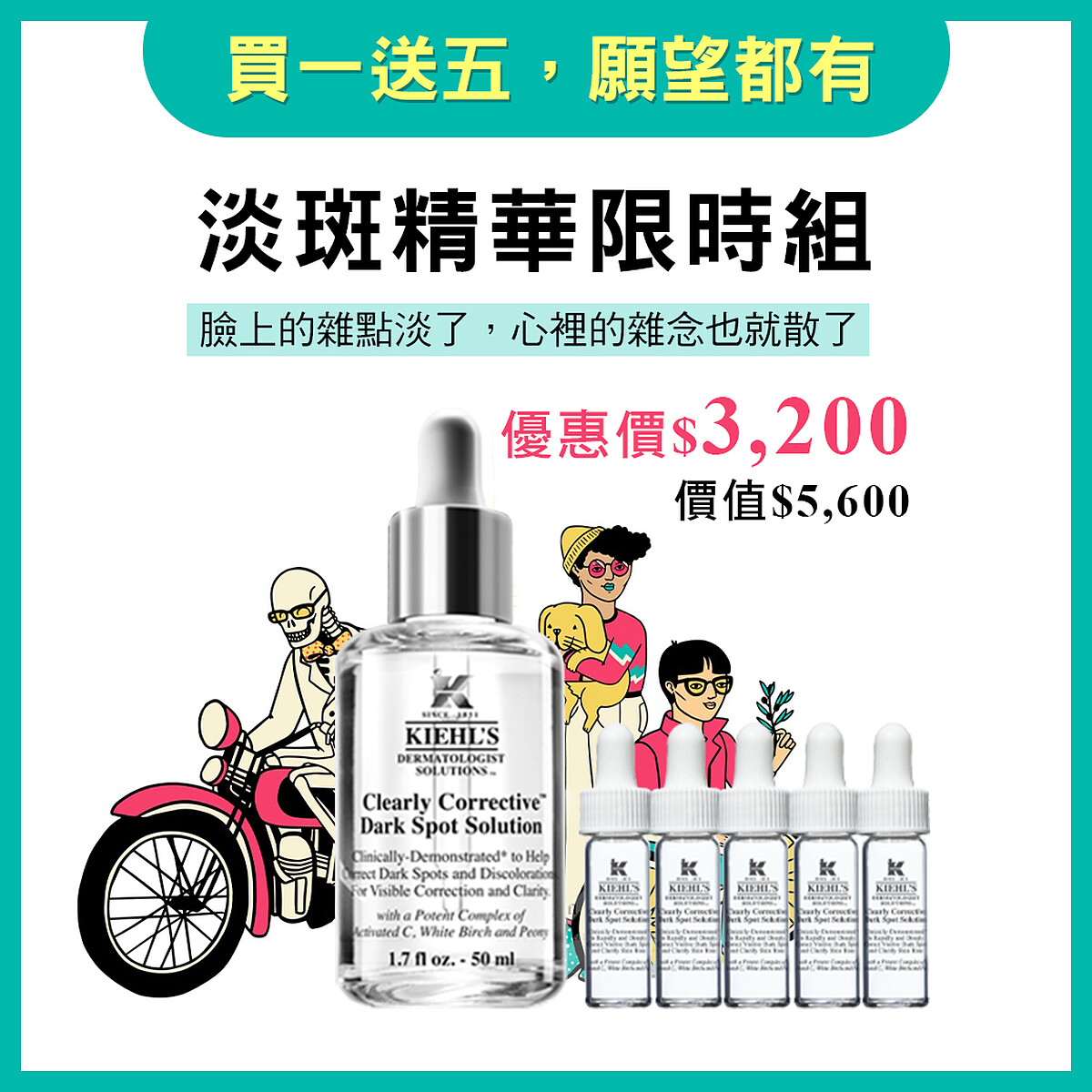 免醫美花大錢,而且不用等修護期,想快速斑點速速走的魔法就是KIEHL’S契爾氏【激光極淨白淡斑精華】買一送五,多到令人心花開,保證年末前花臉變透亮美肌,生人就自帶奶油光濾鏡,來場派對立刻脫單!