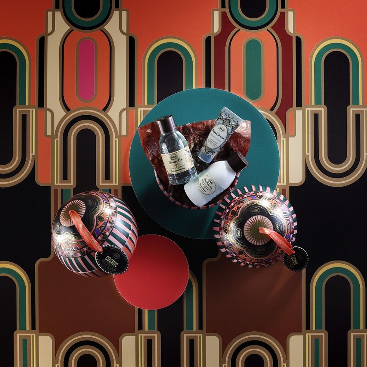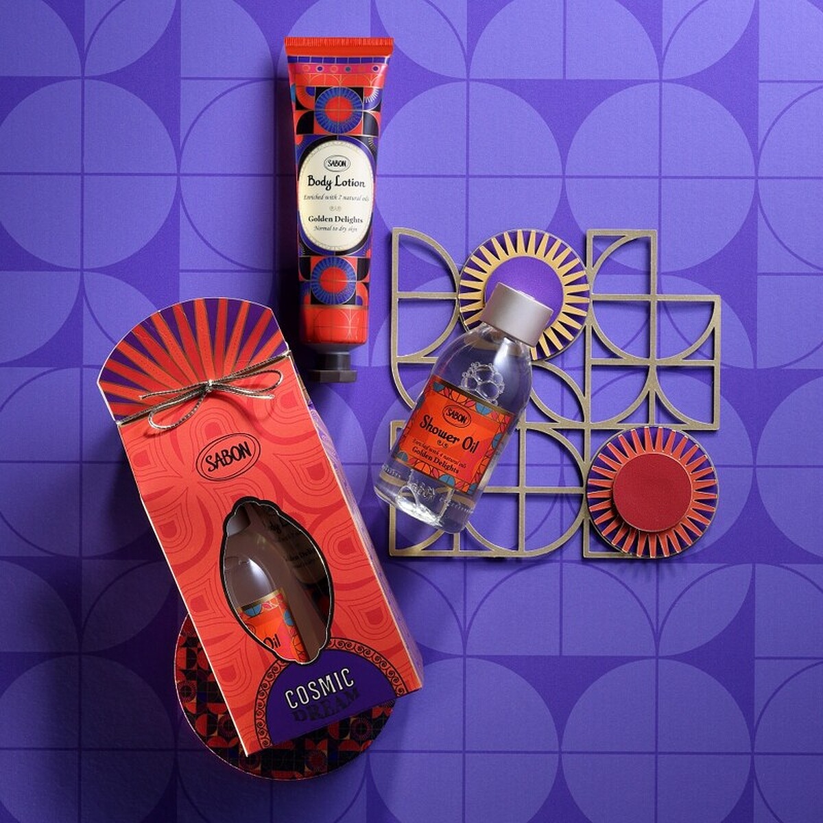 SABON 今年流金年華限量系列的靈感來自60年代的歡快與大膽無畏,包裝同樣取自60年代中由安迪沃荷引領風潮的普普藝術,有重複不斷的幾何圖形、高彩度飽和的色彩、具有未來感的金屬色線條等元素;並以聖誕甜點「橙橘巧克力」為香氣靈感,帶來振奮又溫暖的感受,其中推薦入門的就是這組保養禮盒,包含了沐浴油和身體乳,輕鬆入手今年的聖誕限量包裝和氣息。
