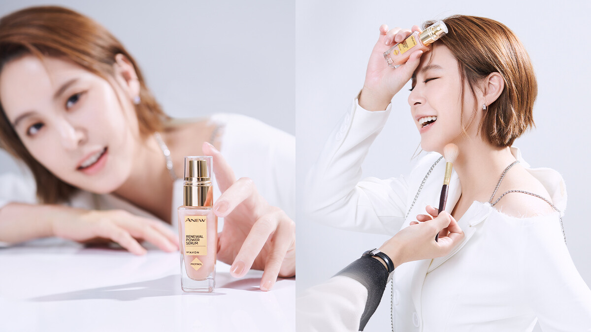 AVON小粉金粉嫩的櫻花色精華液配上高質感的金色外觀,光擺在化妝台上都覺得賞心悅目!使用起來快速有感的「肌膚被拯救」、「心情被療癒」更讓黃小柔驚艷到不行!