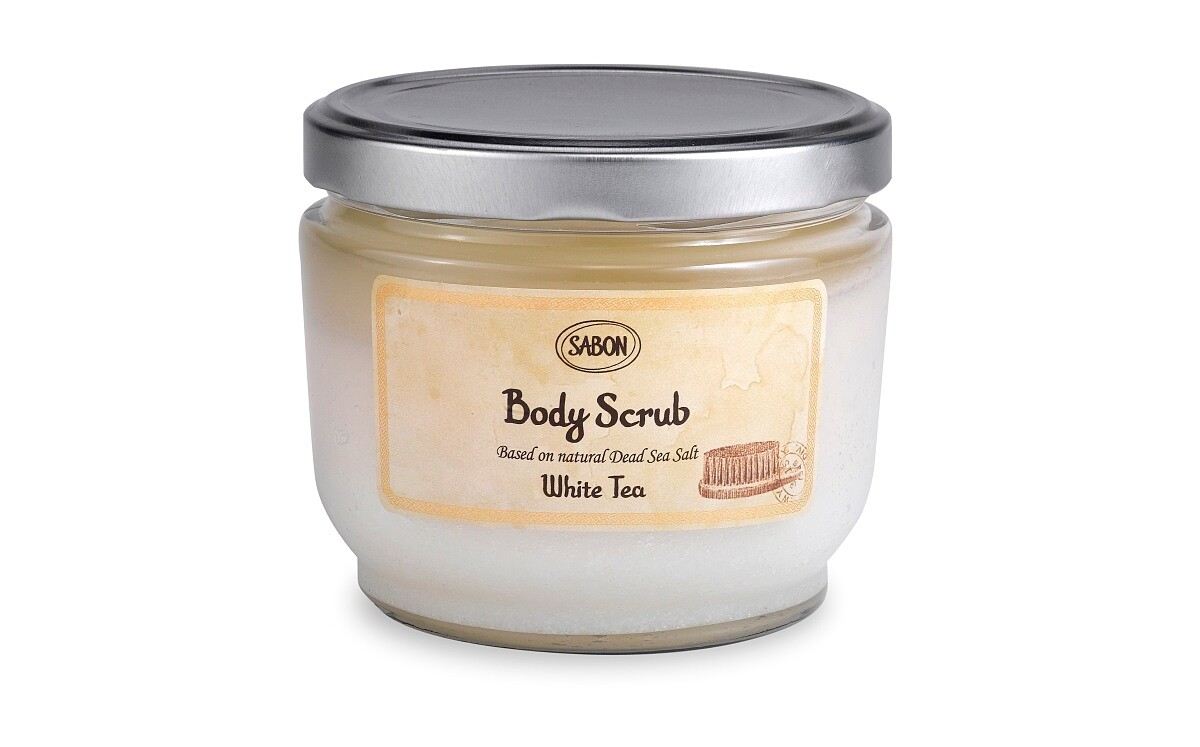 白茶是非常受歡迎的香氣,原本是2019年的限量香,在2020大家敲碗後常態回歸,成為SABON台灣2020、2021第一季賣最好的香味,以茶園採收前的第一道曙光為靈感,用和諧清新的香氣傳遞茶園禪意,前調以青檸與無花果展現晨曦初升的白茶園;中調以白茶為核心使自然與平靜緩緩湧現;最後由雪松木與百里香,透出踏實與安心的感受。磨砂膏90秒就能在世界上賣掉一瓶,皆盛滿來自死海的海鹽,蘊含高度的礦物質成份,並調和主要四種天然植物油,煥去角質後,肌膚能夠仍能保濕柔軟,記得去角質後不需再用沐浴乳清洗,讓天然植物油留在身上增加滋潤度和香氣。