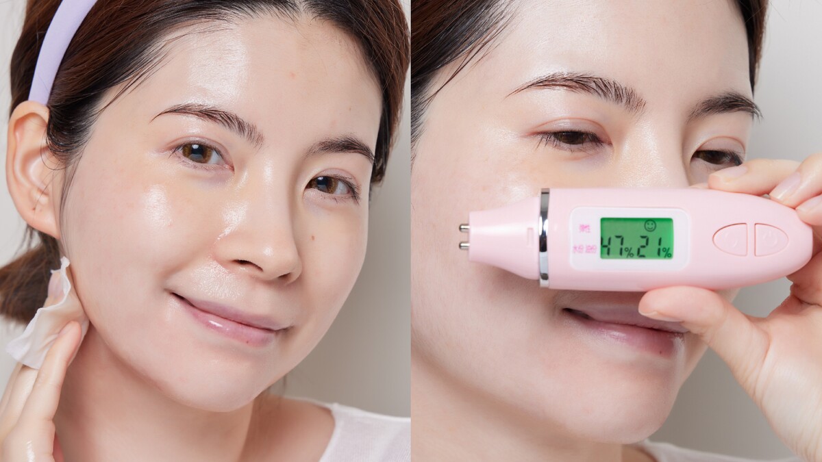用水分儀測試,結果超驚艷,沒想到卸妝後的肌膚竟然可以這麼水潤保濕,水分值飆到47%,彷彿已經抹上保養品的潤澤效果,M編徹底被驚呆!