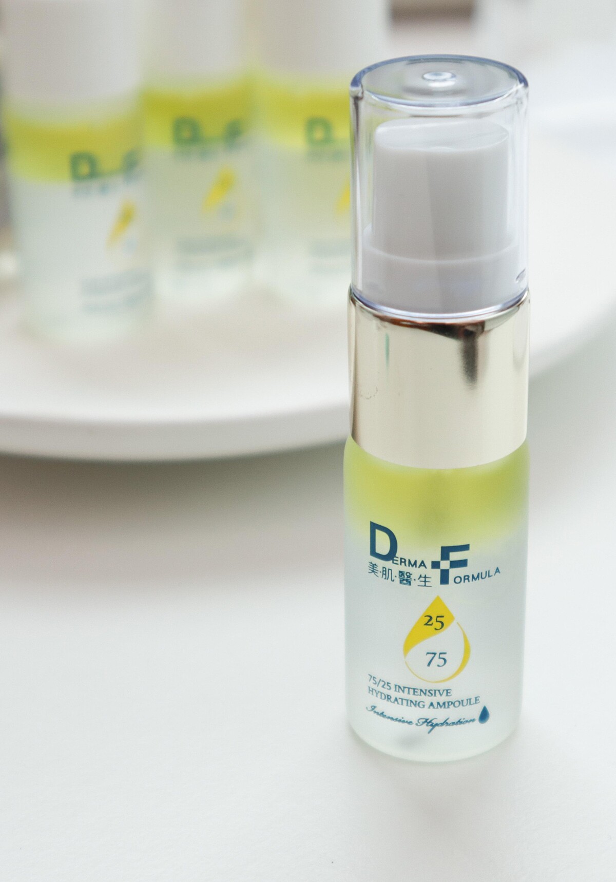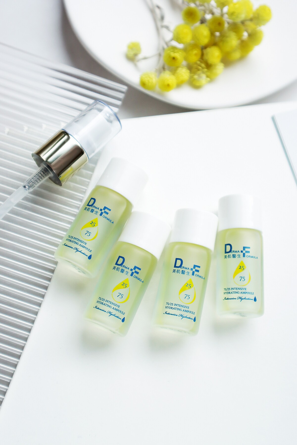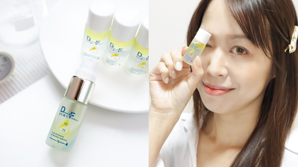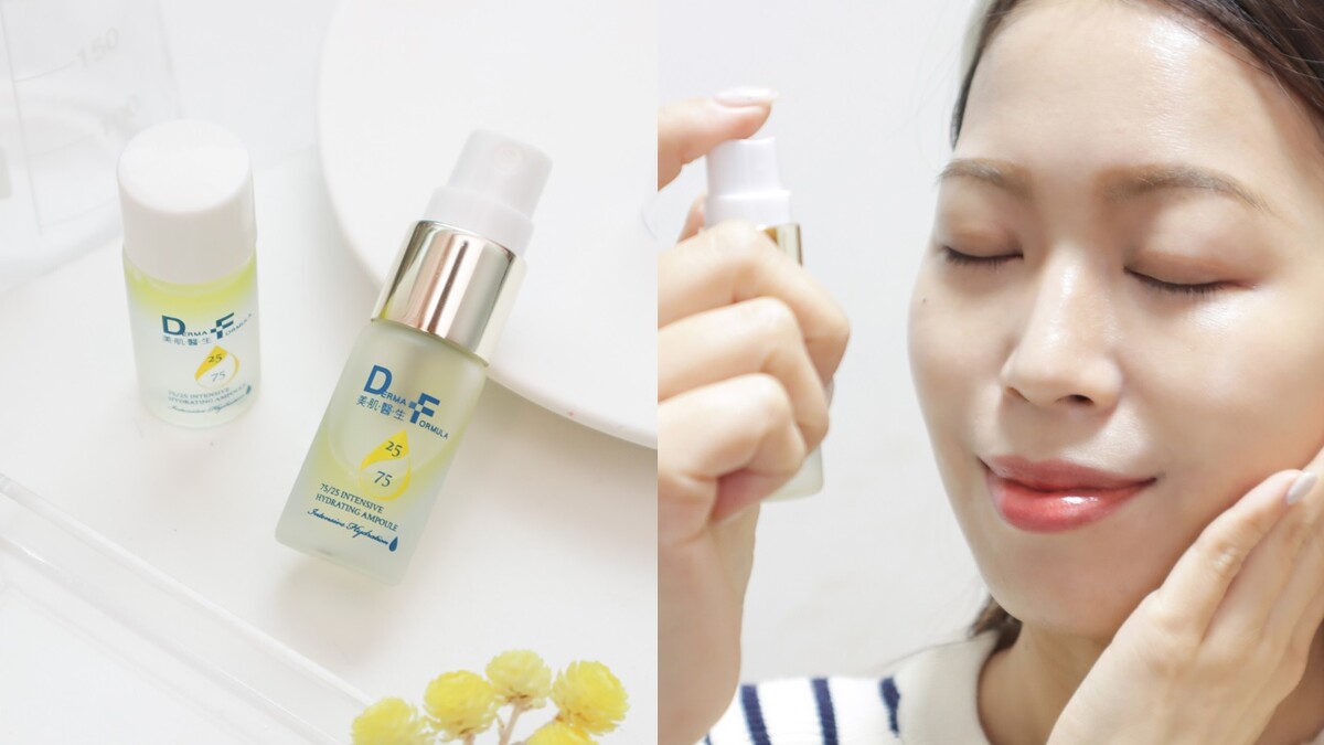 DF美肌醫生「75/25水膜力雙效修護安瓶」蘊含台塑生醫實驗室獨創的75:25水油比例配方,簡單來說,每一瓶都有75%包含「海藻玻尿酸、幼桃萃取、金萱玉露萃取」的水感高效精華液,能舒緩肌膚乾燥不適,提升肌膚對環境的防禦力;另外25%則是由「羽扇豆精華、神經醯胺 3、類胡蘿蔔素保護因子」等融合而成的輕潤精華油組成,能帶給肌膚健康水嫩、密集修護、恢復彈性、散發細緻明亮光澤等保養效果。