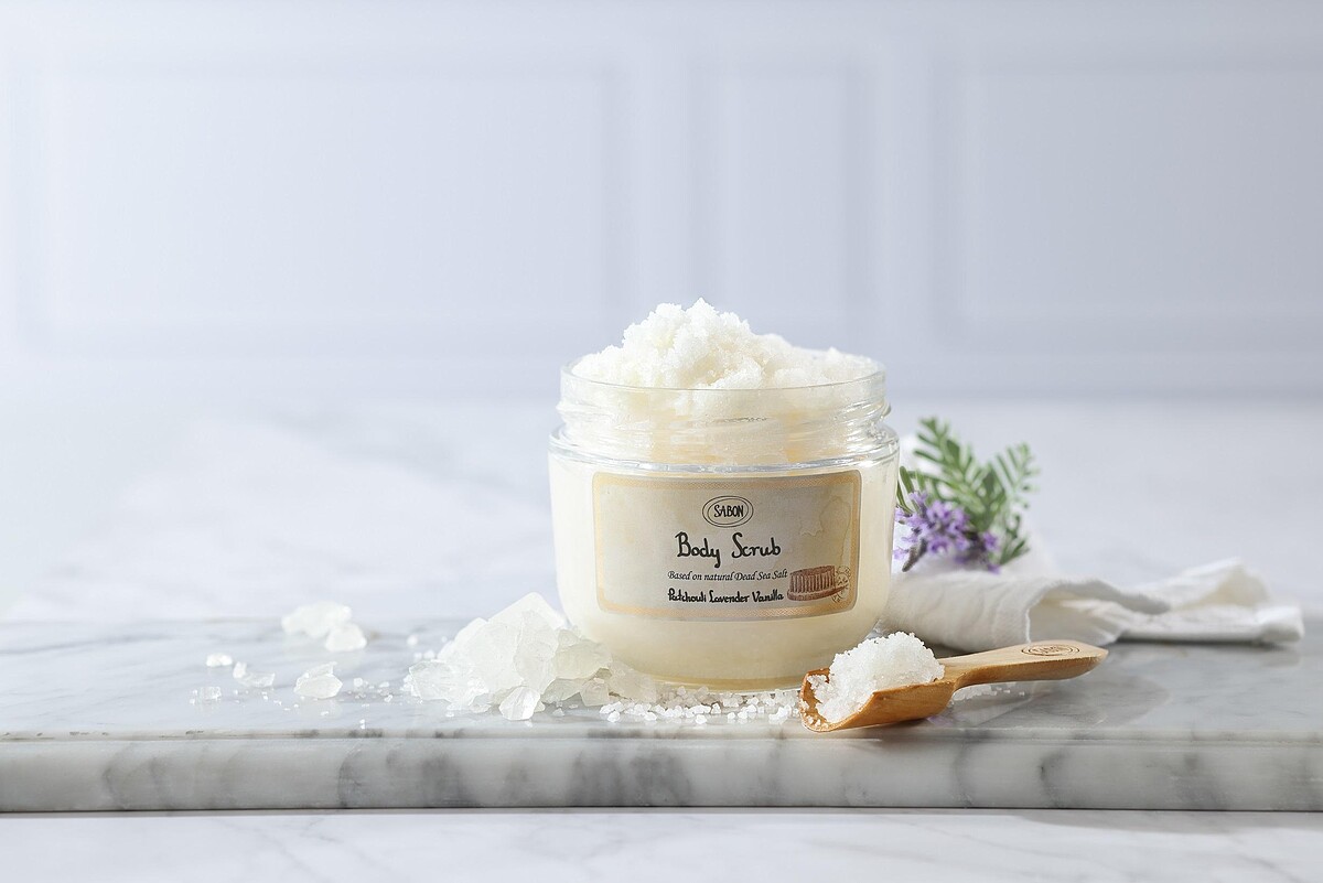 有別一般去角質使用的「柔珠塑膠微粒」,SABON選用流傳兩千多年的美膚聖品死海鹽,還擁有21種礦物質,富含鎂、鉀、鈣,能替肌膚補充微量元素重現活力!而且死海鹽大小適中、具有多面切角,能溫和舒適地替肌膚去除老廢角質,使用後膚質馬上level up,明顯細光滑細嫩,肉眼更是一眼看出明顯亮白了好幾階,超有感的去除粗糙再改善暗沉,天天用為肌膚溫和拋光,肌膚不發光都難!這種絕妙體驗怎能不讓人用一次就會深深愛上無法戒斷!