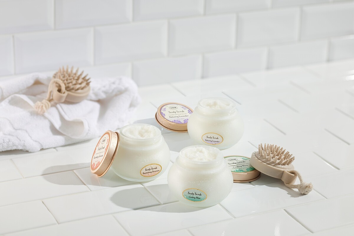 含高達95%天然成分的SABON死海鹽頭皮磨砂膏全新升級版,三款配方,分別加入有機薄荷、薰衣草、天竺葵等三種天然精油,成功解鎖藏各種常見惱人頭皮困擾!「沁心薄荷 死海鹽頭皮磨砂膏」專為頭皮出油較盛者所設計,能洗出沁涼又輕飄飄的舒暢頭皮與髮絲,一掃悶熱感。「舒緩薰衣草 死海鹽頭皮磨砂膏」能舒緩平衡頭皮,讓頭皮不輕易躁動,養出柔彈健康秀髮。「賦活天竺葵 死海鹽頭皮磨砂膏」則適合頭皮常感覺疲勞、緊繃、僵硬且髮絲脆弱的人,幫助賦活並還原健康的頭皮,令髮根更健康強韌。