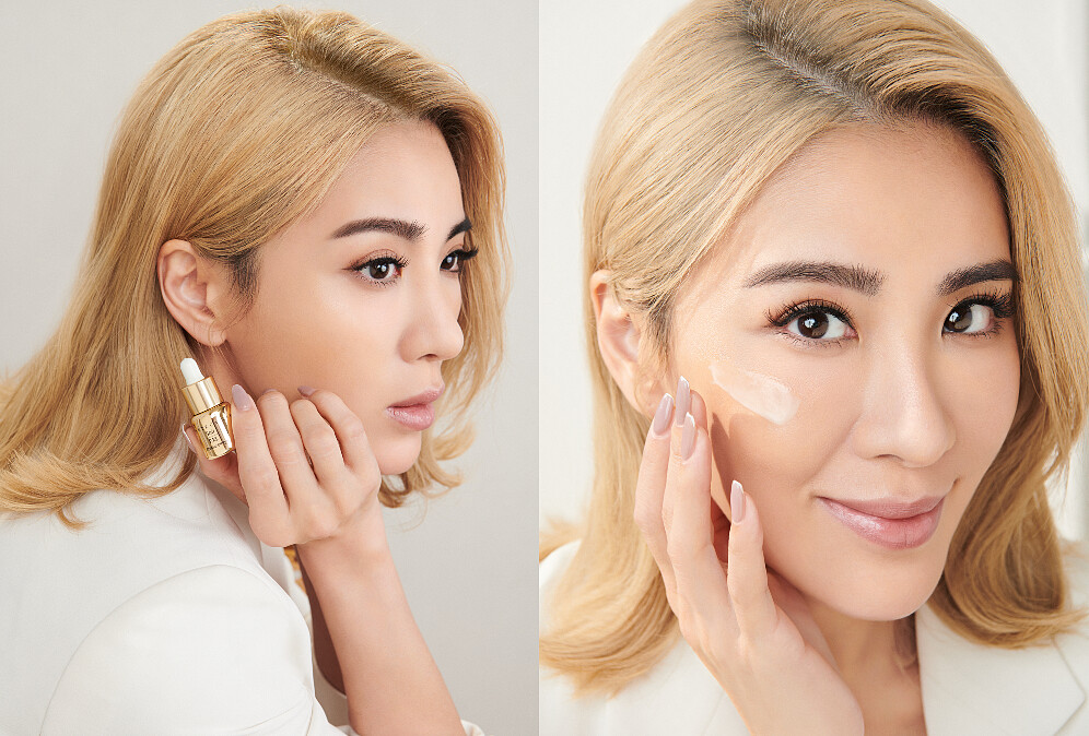 小禎日常的保養會先用「極致純金賦活日夜安瓶」,再擦鑽石級精華液,鑽石級精華液7大逆齡胜肽複方與4大植物細胞萃取、海藻緊膚成分,可以同時達到拉提、緊實、修護、補水與再生功效,完美符合小禎「精準高效」要求!修護現代人經常使用手機、平板3C帶來的肌膚傷害,快速滋養同時淨化肌底,點亮肌膚光彩,讓肌膚達到有如鑽石4C標準:水潤透亮color、無瑕光滑clarity、膨潤肌底carat、緊實輪廓cut!