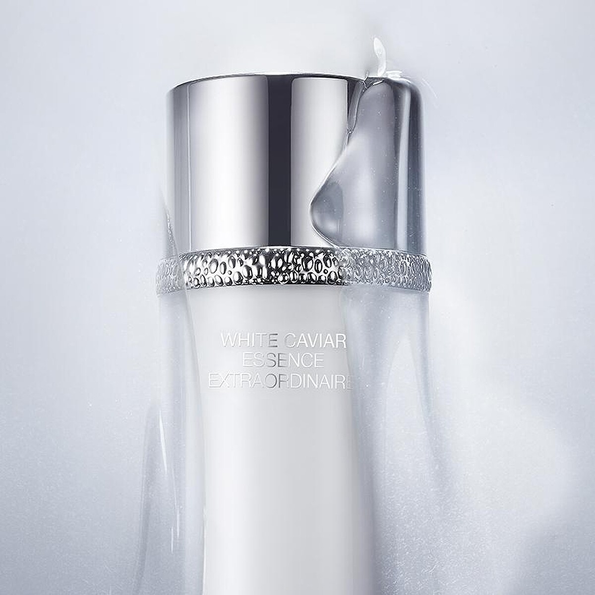 瓶中顆顆如淨白珍珠的聚光膠囊,完美封存珍貴「瑞士黃金魚子緊實精華」及脂溶性維他命C,搭配由獨家植物萃取精華、鑽白聚光活性複方與「沒黑機酸」組成的透明精華。擦上肌膚瞬間,瓶中所有養分將瞬間融合,毫無阻滯地釋放能量,以微分子型態深入肌底,使肌膚迅速重現如稀世藝術品的絕美光采。