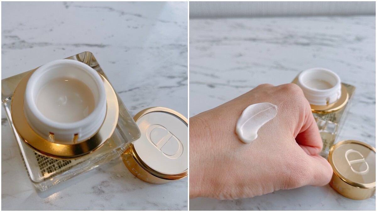 精華液後可挑選適合一般膚質使用的「迪奧生命之源極致金萃乳霜(一般型)」,或是適合乾性肌膚的「迪奧生命之源極致金萃乳霜 (豐潤型)」,成份皆含有2 倍高濃度「葡萄藤蔓嫩芽凝露」,並融入「蘇玳土」獨特4大礦物質成份,與葡萄枝芽內保護枝葉不易乾涸的「黃金凝蠟」,能為肌膚滿注潤澤滋養,塗抹時一抹入膚,能留下絲緞般舒適觸感,讓肌膚更顯柔嫩緊緻,澎潤透亮。