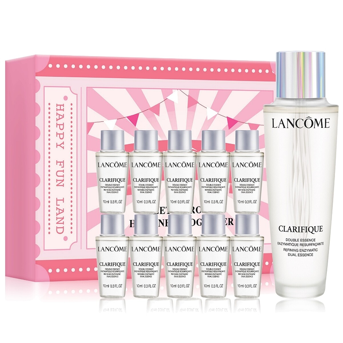 內容:購買任一3/31限定排隊發燒組(小黑瓶買1送1、極光水買1送100),即可獲贈「幸福爆爆桶」(唯我香水5ml、零粉感超持久粉底5ml、超輕盈UV水凝露5ml、絕對完美唇膏#274精巧版、粉紅爆米花、粉紅樂園立體口罩),價值NT3,500。