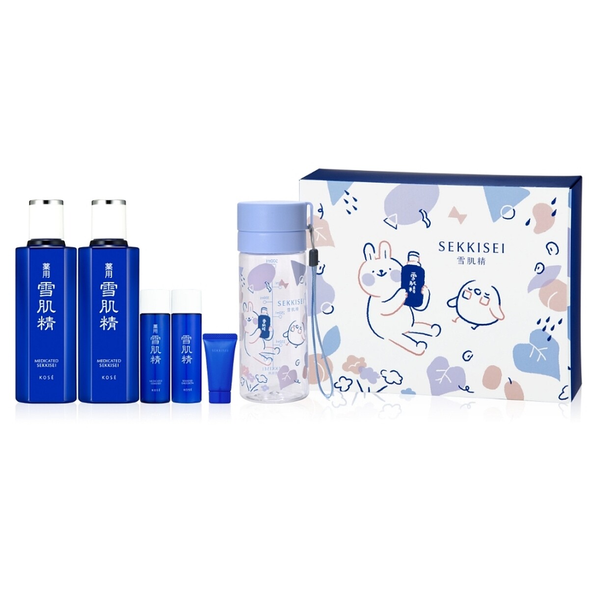內容:雪肌精一般型360ml*2,贈雪肌精45ml、雪肌精乳液45ml、雪肌精漾活UV雙重防禦凝膠10、高絲雪肌精×懶散兔&啾先生仲夏冷水瓶。